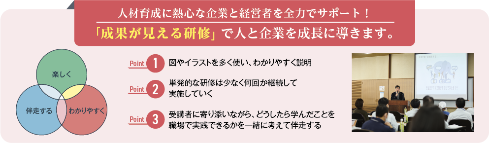 自分の研修を受講してくれた方が、以前より成長したとか、活躍しているといったことをお聞きするたびに、とても嬉しく感じています。